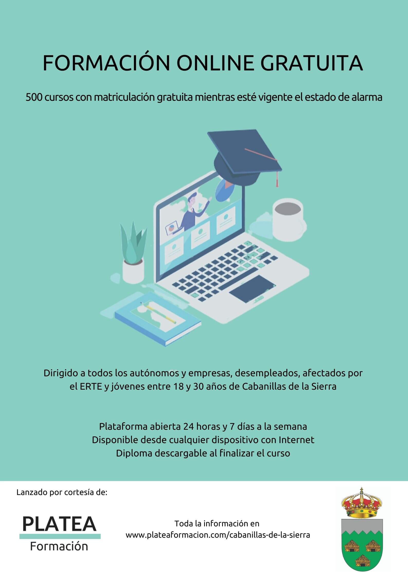El Ayuntamiento de Cabanillas de la Sierra y Platea Formación ponen a disposición de sus vecinos un catálogo de 500 cursos online gratuitos.